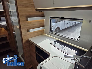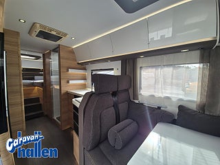 Modellår: 2018, Värmesystem: ALDE - vattenburen centralvärme, Alde Compact 3020 vattenburen centralvärme, Alde vattenburen golvvärme, Svängbar WC med el-spolning, Separat duschutrymme Avfallstank 85 l, TV-skåp med uttag Kylskåp 175 l, Elektrisk nedsänkbar säng fram, Entrédörr med fönster & myggnät & sopbebållare, Isolerad och uppvärmd spillvattentank 85 l, Eldriven höjdjusterbar dubbelsäng, Stänkskydd fram- och bakhjul, Gasolutrymme med plats för 2x11 kg flaskor, Centrallås inkl. bodelsdörr, Skydd i pedestal i förarstolar, ESP och Traction + "Hill Descent, Kyl/frys