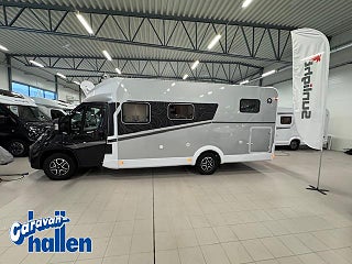 Modellår: 2025, Karosstyp: Halvintegrerad med taksäng, Värmesystem: Truma - luftburen fläktvärme, 40537 Textil inredning XX, 20515 Paket med lackerade stötfångare, 20278 Chassi i svart metallic, 40225 Design applikation bak, 40519 Dekaler 20 år Sunlight, 40496 Sidoväggar i silvermetallic, 40520 Text 20 år Sunlight, 40045 Ombädding enkelbädd tilll dubbelsäng, 40208 12 V TV-förberedelse inkl. plattskärmshållare, 40315 Stort kylskåp 156 l med separat frysfack 29 l, Smart-TV infällbar i skåp + Router med extern antenn 80614 Basic-paket Elektriskt infällbart/utfällbart fotsteg