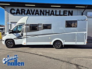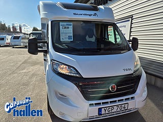 Modellår: 2017, Karosstyp: Halvintegrerad med taksäng, Värmesystem: Truma - luftburen fläktvärme, Chassi Komfort Paket - innehåller: (Fiat 16" aluminiumsfälgar, Läderratt och växelspaksknopp i läderutförande, Instrumentbräda med kromringar, Instrumentpanel med applikationer (Techno-Trim), LED-slingor för varselljus, Strålkastare med svart ram, Sunlight Active Paket - innehåller: (Slät plåt utvändig (sidoväggar) i silver, Sunlight Active dekaler utvändig, Höga monteringsdelar för bakljushållaren), CD/Radio