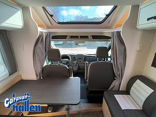 Modellår: 2024, Karosstyp: Halvintegrerad med taksäng, Värmesystem: Truma - luftburen fläktvärme, Airbag förare & passagerare, Nedsänkbar säng ovan sittgrupp, Skyroof Takfönster ovan hytt, Taklucka ovan sittgrupp 700x500, Ramfönster