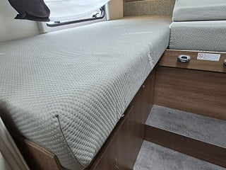Skick/historik: Husbilen är i mycket bra skick, en liten spricka i stötfångaren bak, några trasiga trådar i madrassen bak. Betyg utsidan 4+/5, insidan 5-/5