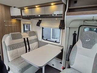 Mycket trevlig halvintegrerad Dethleffs Trend T7057 EB med långbäddar säljes. Välutrustad och mycket praktisk familjehusbil för upp till 4 personer. Nya Fiats digitala instrument, automat, ugn.