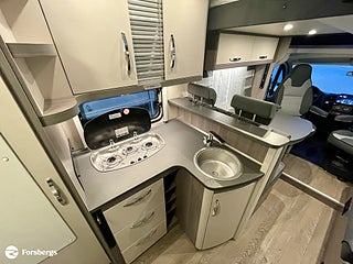Hjuldrift: Framhjulsdrift, Träslag - Cocobolo / Piquet Grey, Märke chassi: CITROËN lågramschassi Light - 3 500 kg, Motortyp: CITROËN Jumper 2, Sverigepaket Optima On Tour (innehållandes Truma Combi 6E värmepanna med elpatron, gastrycksregulator Duocontrol, samma klädsel i förarhytt som vid sittgrupp, Remis mörkläggningssysten, uppvärmd isolerad gråvattentank, Cykelhållare THULE för två cyklar, Fabriksgaranti startad 2025-05-13, CITROËN Jumper 2.2 l ? BlueHDi 140 - Euro 6d-FINAL - 103 kW-140 hk med start-stopp-system, lågramschassi Light - 3 500 kg, Hyttlackering i vit - kylargrill i svart - strålkastarlister i silver - dekor i svart, Fönster - öppningsbart med dubbelglas och toning inkl kombikassetter med mörkläggning och insektsnät för samtliga fönster, Inredning - Cocobolo Piquet Grey, Elstyrda och uppvärmda ytterbackspeglar, ESP inkl ASR - Hillholder och intelligent traktionskontroll, Förar-och passagerarkrockkudde, Förlängda ytterbackspeglar, Främre stötfångare och hyttens dörrhandtag lackerade i fordonets färg, Inbyggd radioantenn i taket, Klimatanläggning förarhytt, mätare på instrumentpanel, Manuell växellåda 6-växlad, Radioförberedelse med högtalare, Varningstriangel och förbandslåda, Förar-och passagerarsäte med armstöd (?kaptensstol?)- och höjdjusterbara, Förar och passagerarsätet kan vridas, Surfplattehållare med USB-uttag, Takfönster - öppningsbart med dubbelglas och toning, GRP-golv med XPS-isolering, GRP-tak för optimalt hagelskydd, Insektsskydd för ingångsdörr, Instegssteg - elektriskt utfällbart, Stabila ytterlister av aluminium, Utdragslåda för gasolfaskor passar till 2 x 11 kg-faskor, Överskåp med stort förvaringsutrymme, Tröskelfri övergång mellan förarhytt och bodel, Garderob med innerbelysning, Kök-arbetsbänk med Diskho av rostfritt stål, Gasspis av rostfritt stål med 3 lågor och elektrisk tändning samt glaskåpa, Kök med utdragslådor av komfortstorlek med fullt utdrag och softstängning, Kylskåp (AES) DOMETIC - 133 liters med dubbelhängd dörr - absorptionsteknik, Ribbottensystem GOODSIDE®, Rundgående överskåp över säng, Duschvägg i badrum - spegelskåp -takdusch med duscharmatur och förvaringsytor, Vridbar toalett från THETFORD, Bodelsbatteri AGM 12V 95Ah, Färskvattentank 100 liter - frost skyddad, Förberedelse för backkamera, Förberedelse för solpanel, Frost skyddade installationer i golvplattformen, Gråvattentank 96 liter - isolerad och uppvärmd, Strömförsörjning 12 V och 230 V, Gasolregulator med övertryckssäkring (DIN EN 12 864) och slang, Belysning för arbetsbänk i köket, Lässpotlights i sittgruppen, Värmesystem Truma Combi 6 E med el-patron, HOBBY CONNECT - styrning för intern teknik via, Hobby-manöverpanel och Bluetooth via app, Förberedelse för SAT-system, TV-uttag inkl 12 V - 230 V och antennuttag