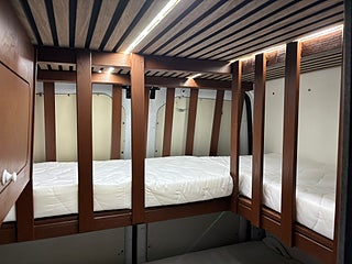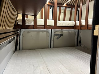 Campern erbjuder 5 godkända sittplatser med 3-punktsbälten, samt två barnbäddar (50×100 cm) i smart L-utförande, vilket gör den perfekt för familjeäventyr.