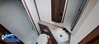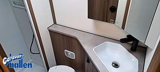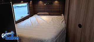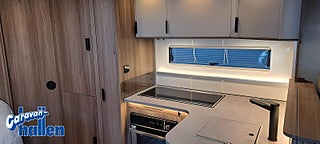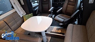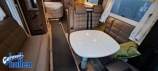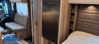 Modellår: 2026, Karosstyp: Halvintegrerad med taksäng, 45 m (endast Royal-serien), AL-KO-chassi 4500 kg / AL-KO-tandemchassi 5200 kg, Rymligt Thetford-kylskåp med frys, Elektrisk nedsänkbar taksäng ovanför dinetten