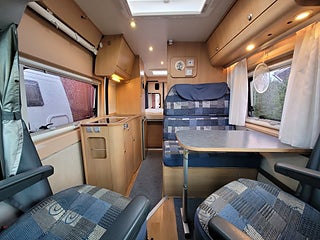 OBS! Prissänkt från 399 500 kr. Trevlig och smidig liten plåtis på endast 6 meter! Tack vare sina kompakta yttermått går denna plåtis billigt på t.ex. färjor jämfört med längre husbilar, ändå är husbilen mycket rymlig interiört med stor dubbelsäng, bäddbar sittgrupp, stort kök samt badrum.