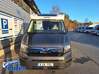 Modellår: 2023, Karosstyp: Halvintegrerad, Värmesystem: Truma - luftburen fläktvärme, Luftburen Truma.värme Combi 6E, 2-kanals luftfjädring för bakaxeln med kompressor för att förbättra körkomforten och reglera fordonshöjden, 17'' Aluminiumfälgar med med däck (original-MAN), Luftkonditionering "Climatic" manuell, Airbag förare & passagerare, Remi mörkläggningsgardiner hytt, "MAN Media VAN Business Navigation" navigationssystem, Duo Control gasolomkopplare