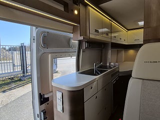 Tillverkare: Globe-Traveller husbilar, som vi är återförsäljare för, byggs i Polen sedan 2010. Globe-Traveller är nog marknadens bäst designade plåtis - och har vunnit många priser - bland annat "Best in Show" på Caravan Stockholm. Byggtekniskt mycket avancerad med bl.a lättare trämaterial, helt dolda skruvar, fantastisk kvalitet på textiler och läder, laminat istället för fornir – de kommer med fräscha tankar och idéer. Allting är väldesignat, genomtänkt in i minsta detalj. Den helt nya baksidan ger 12 cm mer sängutrymme i bodelen - och gör bilen varm och skön vintertid. Dubbelgolvet rymmer alla installationer - även ventilen är frostskyddad.