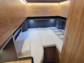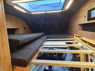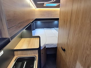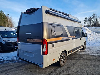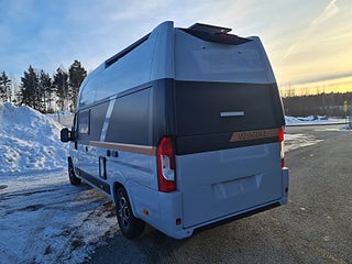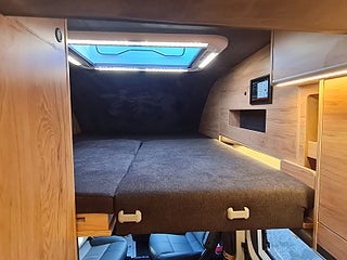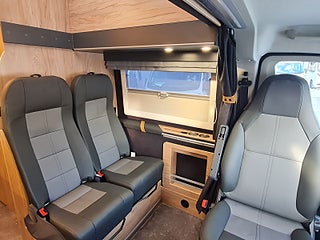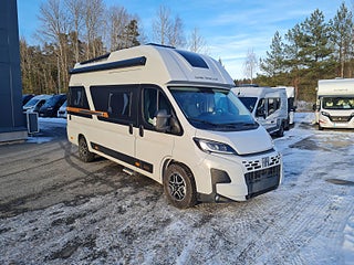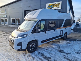 Tekniska data: Årsmodell 2026, Fiat Ducato Maxi chassis, 180 hk motor, 8-vxl automatlåda. Längd 636 cm, höjd 300 cm, totalvikt 4200 kg lastvikt c:a 900 kg, 4 bältesplatser, 4 sovplatser (2 långbäddar bak, otroligt innovativ "alkovsäng" fram för 2).