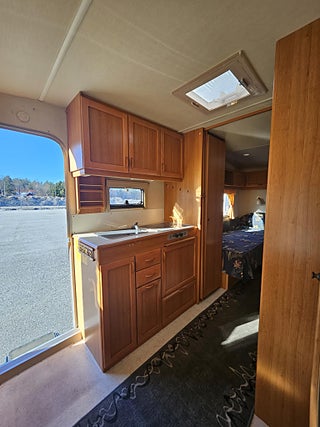 Fin och fuktfri husvagn, mycket bra skick för sin ålder. Finansiering möjlig. Levereras nybesiktigad.