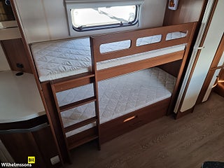 Fin och rymlig familjevagn med populär barnkammarlösning., Utrustad med ALDE vattenburen centralvärme och golvvärme perfekt för vintercamping., våningssäng på sidan bak samt bra med förvaring., Premium-modell med hög komfort och bra isolering., Markis AKS-drag Alde vattenburen värme Aluminiumfälgar Batteri + laddare, Bordsstativ - höj och sänkbart Eluttag 230 V - extra, Färskvattentank Gasolflaska Gasvarnare, Golvvärme - el Kassettoa Kyl/frys separat Köksfläkt Lastluckor Myggnätsdörr Stödben bak Stödben fram Taklucka Heki Tonade rutor, TV-antenn Varmvatten Värme - vattenbubren, LED-belysning Våningssäng. Dusch, Besiktigad till 2028-02-29, OBS! LÖRDAGAR: ELGRINDEN ÄR STÄNGD. RING 08?34 00 25, VID ANKOMST SÅ ÖPPNAR VI., VID BEHOV KAN FINANSIERINGSUPPLÄGG FÖRMEDLAS GENOM VÅR SAMARBETSPARTNER LF FINANS. MY MONEY** ----------------------------------------------------------------------------------