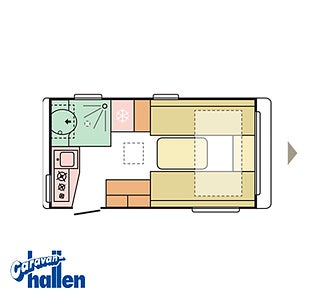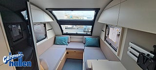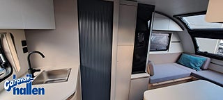 Modellår: 2026, Värmesystem: Truma - luftburen fläktvärme, Truma Combi 4 E med inbyggd varmvattenberedare, Kaross och tak av glasfiber, Myggnät vid samtliga fönster, Sidokjolar av ABS-plast grafit, Tvådelad dörr utan fönster, Färskvattentank med utvändig påfyllning 50 L, Spillvattentank 23L