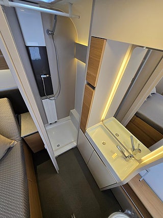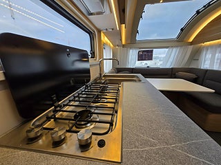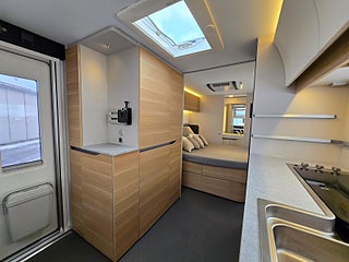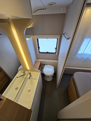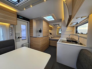 Modellår: 2025, Värmesystem: ALDE - vattenburen centralvärme, Klädsel: Textil: Dark Almond, ALDE - vattenburen centralvärme, Färskvattentank - frysskyddad, Bluetooth-anslutning till högtalare, Fönster med mörkläggning/myggnät, Bluetooth stereomottagare