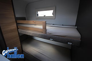 Modellår: 2019, Värmesystem: ALDE - vattenburen centralvärme, Alde vattenburen golvvärme, Integrerad spillvattentank, Tak av glasfiberarmerad plast, Kaross av glasfiberarmerad plast, Front- och bakgavel av ABS-plast, 3-lågig spis med ugn och grill, Färskvattentank med utvändig påfyllning 50 l, Takmonterad markis med gavlar och front, 2-våningssäng