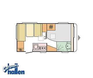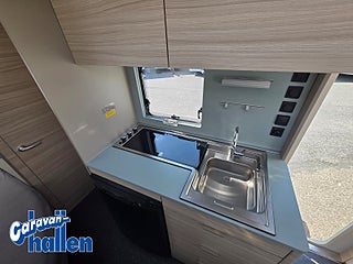 Modellår: 2021, Tak av glasfiberarmerad plast, 3-lågig spis med skärbräda som passas in över diskhon, Stämningsbelysning under överskåp, Plus paket Micro
