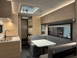 Modellår: 2026, Truma - luftburen fläktvärme, Stort kylskåp med separat frys, Färskvattentank - frysskyddad, Bluetooth-anslutning till högtalare, Avdragbar moms