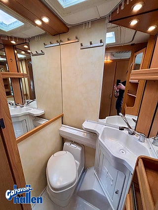 Modellår: 2004, Värmesystem: ALDE - vattenburen centralvärme, ALDE - vattenburen centralvärme, Färskvattentank - frysskyddad, Spillvattentank - frysskyddad, Alde Compact 3000 centralvärmepanna, Dubbelfönster med myggnät och mörkläggningsgardin, Mycket gott skick!