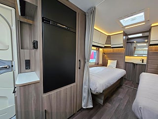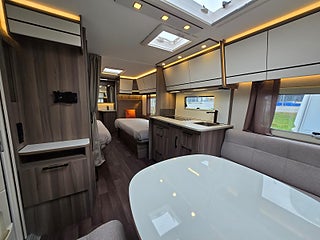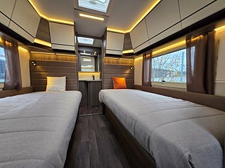 Modellår: 2025, Värmesystem: ALDE - vattenburen centralvärme, ALDE - vattenburen centralvärme, Värmeelement i hygienutrymmet, Stort kylskåp med separat frys, Eluttag för TV-antenn/12V/230V - utvändigt, Färskvattentank - frysskyddad, Spillvattentank - frysskyddad, Bluetooth-anslutning till högtalare, Fönster med mörkläggning/myggnät, Vinteranpassad
