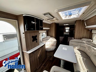 Modellår: 2020, Värmesystem: ALDE - vattenburen centralvärme, Alde Compact 3020 centralvärme, Formgjuten skyddsmatta i gasolkoffert, Belysning gasolkoffert/skidfack, Högtalare fram och bak samt Subwofer, Indirekt belysning överskåp bak, Multi-media-center med CD/Radio, Utvändig gasolanslutning för grill, Öppningsbart framfönster
