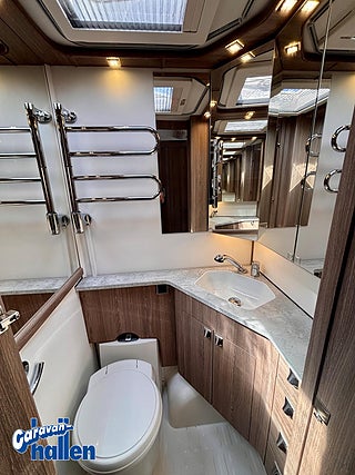 Modellår: 2020, Värmesystem: ALDE - vattenburen centralvärme, Alde Compact 3020 centralvärme, Spillvattentank (32 liter) Formgjuten skyddsmatta i gasolkoffert, Skidfack med utdragbar botten, Stabiliseringssystem ATC (Antisladdsystem), Elektrisk Uppfällbar huvudgärde, Avfallshink med källsortering, Utvändig gasolanslutning för grill placerad i gasolkoffert, Centraldammsugare