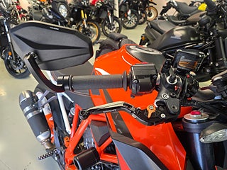 En riktig streetfighter från KTM med kraftfull motor på 1301cc den har även mycket coola delar. Det är en hoj som fungerar lika bra att pendla med som att ta en aktiv tur på en kurvig väg. Den är extra utrustad med bra tillbehör som: Power part sadel. Power part barend mirrors. Den har Quickshifter.Tailtidy med miniblinkers. Krashpuckar. Tankskydd. Nicecnc kopplingskåpa mm. Medföljer vid köp men är inte monterade Akrapovic Slip-on ljuddämpare. Arrow midpipe. Sadelcuts. Street .