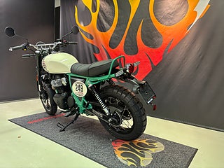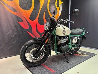 Den nya Scrambler modellen Bear 650 som inspirerats från mc tävlingen i Kaliforniens öken som heter Big Bear Run. Den har den fina 648cc tvåcylindrig motor, stabil och balanserad fjädring. Med dubbla ABS och ett smidigt chassi säkerställer att den är enkel att hantera. LED-belysning. Effekt 47 hk @ 7250 rpm. Vridmoment 52. Elstart. 3 års garanti och 3 års fri vägassistans (RSA). Sitthöjd: 830 mm. Tjänstevikt: 214 kg. Växellåda 6-växlad. Bränslekapacitet: 13, 7 L. Custom . Glidare . Klassiker .