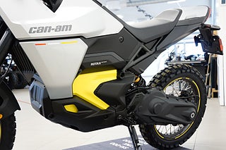 Origin '73, en hyllning till den första Can-Am-motorcykeln som lanserades 1973, med unik färg, en mätspoiler, exklusiva detaljer och märken, plus signatur LED-lampor. Elektrisk dubbelsportmotorcykel designad för både väg och terräng. Med en lättviktsdesign och kraftfull elmotor erbjuder den utmärkt hantering och hög prestanda. Origin finns i varianterna 11 kW och 35 kW och har en räckvidd på upp till 145 km vid stadskörning. Den är utrustad med sex körlägen, inklusive Off-Road och Sport, och har funktioner som aktiv/passiv regenerering och en praktisk backningsfunktion. Perfekt för äventyr på både asfalt och i terräng.
