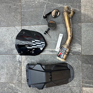 Sidoväskor av hög kvalitet från SW-Motech samt en eftermarknadsljuddämpare (ej monterad).