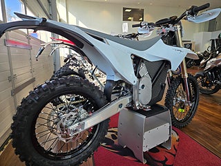 Helt nya Stark VARG EX enduro som är registrerad och du kan köra på vägen. Du kan byta kör program, anpassa och ställa in den perfekt för alla typer av banor och körstilar. Stark VARG EX har en app du kan konfigurera upp till 100 kör program och ha fem av dem aktivt installerade samtidigt på motorcykeln. Med 30 % mer kraft än en traditionell fyrtakts 450cc levererar Stark VARG en toppeffekt på 80 hk, via en drivlina som genererar 9 hk per kg samt ett vridmoment på 938 Nm på bakhjulet. Stark VARG erbjuder dig en liknande räckvidd som en 450cc med full bränsletank, men utan att förorena miljön. Batterikapacitet är på 6 kWh och en full uppladdning tar mellan 1 eller 2 timmar beroende på uttag och laddare. En fulladdad Stark VARG kan fullborda ett fullt MXGP-heat eller låta dig njuta av upp till 6 timmars lugnare körning. Inget bränsle, mer tid för körning. Vikt: 120 kg.