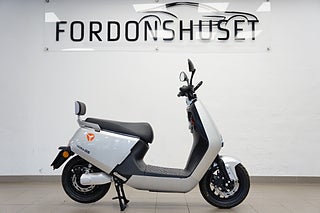 Med dess stilrena design finns det gott om plats för både förare och passagerare. Motorn är tyst och stark och har två effektlägen. Det högkvalitativa Panasonic batteriet är placerat under fötterna med en låg tyngdpunkt och jämn viktfördelning som ger ett välbalanserat fordon. Battericellerna har en talk-back funktion som i kombination med den tillhörande smartladdaren optimerar batteriets livslängd. Elsystemet och komponenterna är dessutom designade för att klara vårt nordiska klimat med regn salt och kyla. Yadea G5 har 12 tums hjul som ökar komfort och säkerhet. Det finns även ett USB-uttag för laddning av t.ex. smartphone och det rymliga hjälmfacket är placerat under sadeln.
