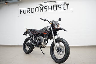 Rieju Black Edition Cross Country (XC) tar dig enkelt och säkert fram på de flesta underlagen. De robusta hjulen och däcken ger dig större möjlighet att utforska många olika typer av terränger, väglag och väderförhållanden utan att tumma på komfort och prestanda. Med denna crossmoped tar du dig fram lika bra både i och utanför staden. Här förenas design, elegans och körglädje på ett kompromisslöst sätt. Med en CAD-utvecklad och kompakt ”dualbeam”-chassi får du den ultimata viktfördelningen både på och utanför vägen. En längre hjulbas ger förbättrad vridstyvhet vid aktiv körning. Den moderna karossen och strålkastarnas design skapar en tydlig MC-look. Med den senaste Minarelli AM6 vätskekylda 2-taktsmotorn och den 6-växlade lådan får du kraften på rätt ställe. Hastighet och andra viktiga funktioner visas på en tydlig digital multifunktionsdisplay.