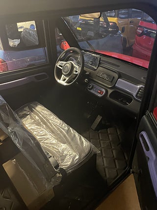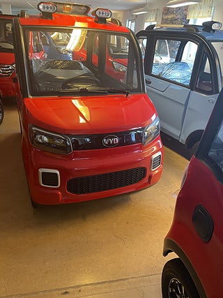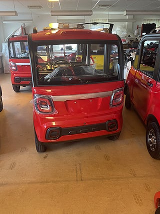 OBS NU I LAGER! Titan Zero R2 X4 Med kraftfullt uttagbart lithiumbatteri! perfekt att ta in batteri och ladda i lägenhet skola jobb mm. priset gäller endast ett fåtal lagerbilar! R2X4 är det närmaste man kan komma en riktig bil! Här sitter du bekvämt och skyddad från väder och vind! Med alla funktioner som en vanlig modern bil har. Den eldrivna mopedbilen är utrustad till "Max" redan från början. Du kör riktigt billigt - 1 kr/mil vid batteridrift och tyst. Baksätet rymmer 2 personer. Du parkerar bilen mycket enkelt och bland trängre utrymmen där "Vanliga" bilar inte får plats. En perfekt pendlar bil om du bor inom rimligt avstånd, eller varför inte ta en sväng ner på stan ? En extremt rolig bil för 3-4personer, roligt och billigt......................... Teknisk Data: - Maxfart: 30km/h Typad som moped klass 2, är man född innan 1994 så behövs varken körkort eller förarbevis! - Laddtid: 6-8 timmar i vanligt 230V vägguttag - Räckvidd: ca 7 mil kan dubblas med extra batteri!(beroende på körsätt samt väder) Milkostnad: ca 1 kr/mil Färger: Röd, vit. blå utrustning: Ramuppbyggt chassi med deformerbara zoner för hög krocksäkerhet.Hela karossen är byggd i plåt, Aluminiumfälgar taklucka Automatiskt halvljus LED-strålkastare LED-bakljus Kupévärme Defroster Stereo/back kamera backspeglar, Skivbromsar För mer info gå in på titanzero.se....sökord titan zero elektrisk mopedbil r4 r5 . Var god meddela innan ni, kommer. Köp till larm för endast 2495 kr monterat och klart! Dieselvärme 13000kr gör bilen varm och go när det är kallt ute utan att dra mycket på batteriet! Obs dessa kan fås med styre istället för ratt, alla funktioner finns på styret så man behöver inte använda benen alls för körning eller ratt i mitten eller till vänster! obs mycket bra plats för föraren och stora dörrar lätt att komma i och ur bilen!