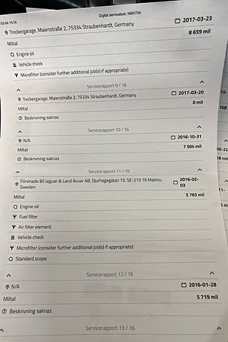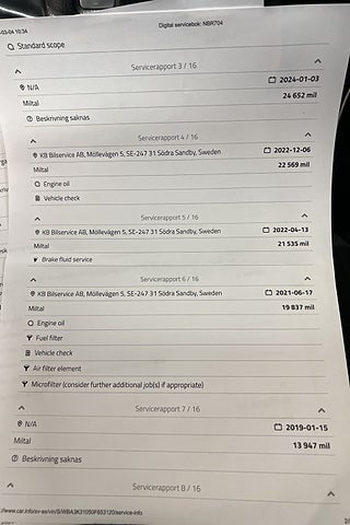 Fordonets historik - 21 händelser finns registrerade