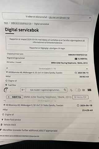 MärkeBMWModell320Fordonsår2012I trafik2012-11-06UtsläppsklassEURO 5FärgVitMotorstorlek1 995 cc