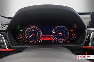 Blanka svarta pianolack paneler, Mattröd dekorrand på instrumentpanelen och röda sömmar på multifunktionratten i läder.