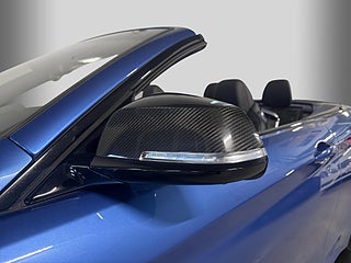 Nu kan vi stolt presentera vår BMW 420 i Cabriolet i den ovanliga kulören Estorilblå. Färgen tillsammans med M-Sportpaket, 19-tumsfälgar, svart optik och backspeglar i kolfiber ger bilen ett sportigt och exklusivt utseende.