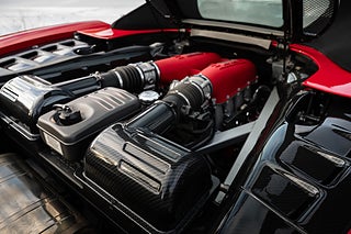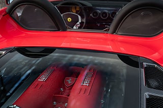 Detta exemplar är specificerad från fabrik i den klassiska färgkombinationen Rosso Corsa över en interiör i Nero med kontrastsömmar i Rosso och mattor i Nero, Extrautrustad med Kolfiber paneler på instrumentpanel och mittkonsol, Kolfiberstolar (Racing seats), Keramiska bromsar, Gula bromsok, 19" kulpolerade fälgar, Scuderia shields på skärmarna, parkeringssensorer bak, Varvräknare i Giallo (Gul), eftermonterade kolfiberdetaljer på Diffusorn, paneler i motorrum samt luftboxar, stenskottsfolierad front