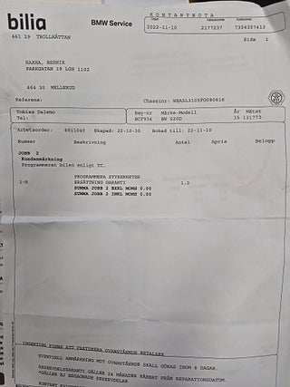 Fordonets historik - 30 händelser finns registrerade