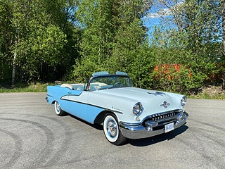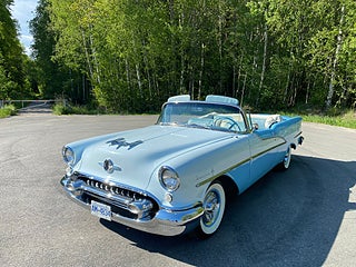 Top of the line modellen 1955 inom Oldsmobile Ninety Eight Starfire Convertible, ett mycket lyxigare alternativ till Chevrolet Belair, En tidigare renoverad bil som är i toppskick, Otroligt vacker och elegant modell med mycket lyx, Länk till film om bilen: https://www.youtube.com/watch?v=ztAqPMtHQ_A , Ring eller maila innan för visning ! , Vi erbjuder även Finansiering via Wasa kredit