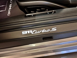 Svensksåld samt full specad Porsche 911 / 992 Turbo S 650HK, Sportavgas-system inkl. sportavgasrör i svart högglans, PASM Porsche Active suspension management inkl. 10mm sänkning, Power steering plus, Rattvärme, Lifting system, Panorama glastak, Porsche vapen präglade i nackstöd, Porsche Innodrive inkl. adaptiv farthållare, Stolvärme+stol ventilation fram, Porsche Entry, Fabrikstonade rutor, Solskydd i läder, Modell logo präglad i mittarmstöd, Ytterback-speglar i Carbon, Instegslister i carbon, Lane change assist, LED matrix strålkastare i svart inkl. PDLS Plus, Bakljus i Exclusive design, Night-Vision assist, Burmester surround ljudpaket, Modellbeteckning i svart, PPF skyddsfolie i front, Bälten i kontrastfärg-Racing yellow, Park assist inkl. surround view, Ljuspaket, Porsche logo LED belysnings i dörrar, Sport-chrono tavla i kontrastfärg-White, Garageöppnare homelink, Sport-Design sidokjolar, Servad på Porsche. Passa på att förvärva en full specad Porsche 911 Turbo S i rätt utförande! Bilen är i toppskick!