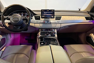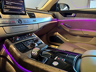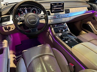 Övriga detaljer som Night Vision, Xenon Plus, ljuspaket, krompaket, tonade rutor, multifunktionsratt, aluminiumfälgar 20 tum, regnsensor, automatiskt avbländande speglar och färddator med färgskärm gör denna A8 L till en av de mest välutrustade bilarna på marknaden.