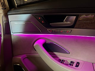 Bilen är utrustad med LED-strålkastare, panoramaglastak, backkamera, Audi parking system advanced, advanced key och fjärrstyrd parkeringsvärmare. Komforten är exceptionell med komforthäten fram med minne, sätesventilation och massagefunktion i både fram- och baksäten samt enkelsäten bak. Kupén är klädd i exklusivt Valcona helskinn i sammetsbeige med Alcantarapaket, dekorinlägg i beige masurbjörk och kompletteras av ljusisolerat dubbelglas, Soft Close-dörrar och 4-zons klimatanläggning.
