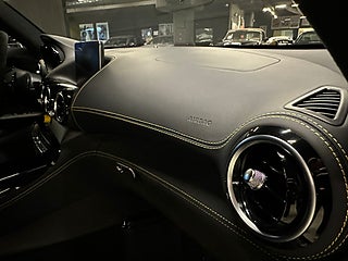 Invändigt möts du av en förarfokuserad cockpit med sportstolar i mikrofiber, AMG-ratt i samma material och exklusiva kolfiberdetaljer. Ambient belysning och premium ljudsystem höjer känslan ytterligare – men det är fortfarande föraren som står i centrum.