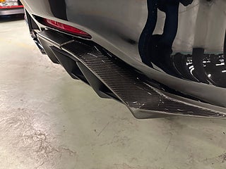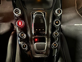 Designen är lika aggressiv som prestandan antyder. Exteriören i svart kompletteras av AMG:s kolfiberpaket, kolfibertak och aerodynamiska detaljer som inte bara ser brutala ut – de är funktionella. Titaniumavgassystemet ger ett ljud som är rent motorsport-DNA.