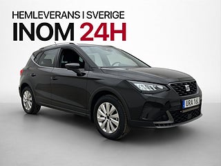 SEAT Arona TSI 110 hk FR är en sportig och smidig SUV med motor- och kupévärmare, LED-ramp, backkamera och Apple CarPlay för en modern körupplevelse, den pigga motorn kombinerar låg förbrukning med bra komfort och passar perfekt för både stad och pendling.