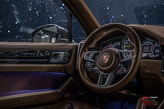 Utrustad med bland annat: Platinum Edition - SportDesign paket i Svart Högglans - Clubläderinredning (Truffle Brown) - Porsche Dynamic Chassis Control (PDCC) - 21" Cayenne Turbo fälgar i Satin Platinum inkl. Grönlackerade Bromsok - Night Vision - Panoramaglastak inkl. Elektrisk Glastaklucka - Sportavgassystem inkl. Sportavgasrör i Svart Högglans - Porsche InnoDrive inkl. Aktiv Styrassistent - Adaptiv Farthållare (ACC) - Adaptiva Sportstolar (18-vägs) inkl. Minnespaket - Ventilerade Säten - Akustikrutor inkl. Tonade rutor - Head up display (HuD) - BOSE Surroundljudsystem - Infällbar Dragkrok (Elektrisk) - LED strålkastare tonade inkl. PDLS - 4 zons Klimat - Filbytesassistent - Växelspak i Exclusive Design - Uppvärmd Vindruta - Cayenne Trailer - Cayenne Comfort - ParkAssist inkl. Surround View - Adaptiv Luftfjädring inkl. PASM - Porsche Entry + Drive