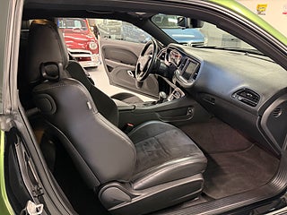Dodge Challenger Scat Pack, tillverkad tisdag 30 oktober 2018, importerad ny från USA till Europa, svart metallic men nu folierad i snygg original grön metallic kulör med svart huv och tak, 492 HK Hemi med 8 växlad automat, Premium sound group med subwoofer, Aktivt avgassystem Borla Atak (original medföljer), Uppvärmda lädersäten med Scat Pack logo, Större diffuser bak inkl dimljus, Eibach sänknings fjädrar. En Challenger i mycket välskött skick och dokumenterat servad hela vägen. Byte och finansiering välkomnas.
