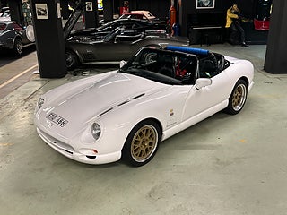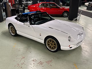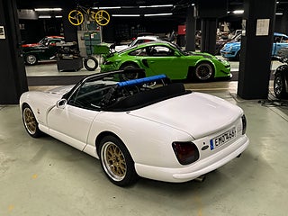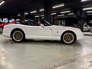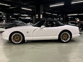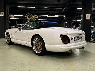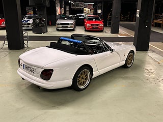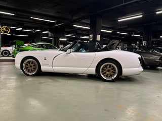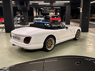 Ett fint exemplar av en sällsynt TVR Chimaera 500 från 1998, vit med svart interiör. Bilen har haft endast 2 ägare i Storbritannien och 3 sedan den kom till Sverige 2013. En bil ägd av en sann entusiast som regelbundet har varit en del av TVR-klubbens scen. Den har fördel av en rullbur och säkerhetsbälten, större AP-bromsar och lättviktiga Image-fälgar.