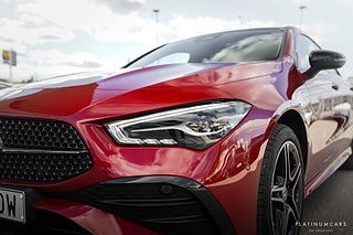 Nu i lager en riktigt fin Mercedes CLA 250e AMG Coupe 2024 i färgen Patagonia röd metallic med svart AMG interiör ink röda kontrastsömmar och endast 3500mil!