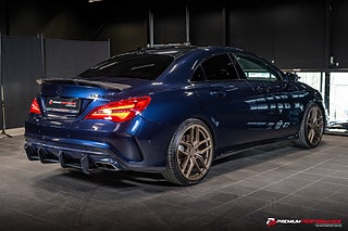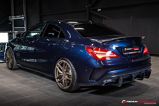 Premium Performance presenterar en lågmilad och påkostad Mercedes-Benz CLA 45 AMG i den eleganta kulören Cavansite Blå Metallic. Ett välservat exemplar i gott skick samt i det för facelift-modellen ovanliga coupé-utförandet.
